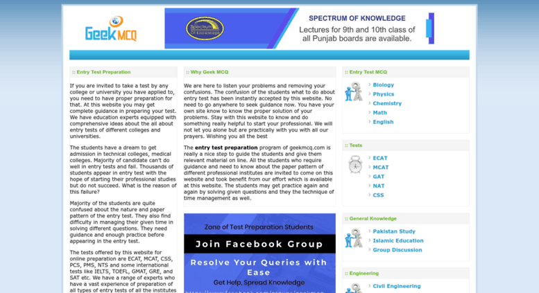 Access Geekmcq Com Free Entry Test Preparation Online Mcqs For